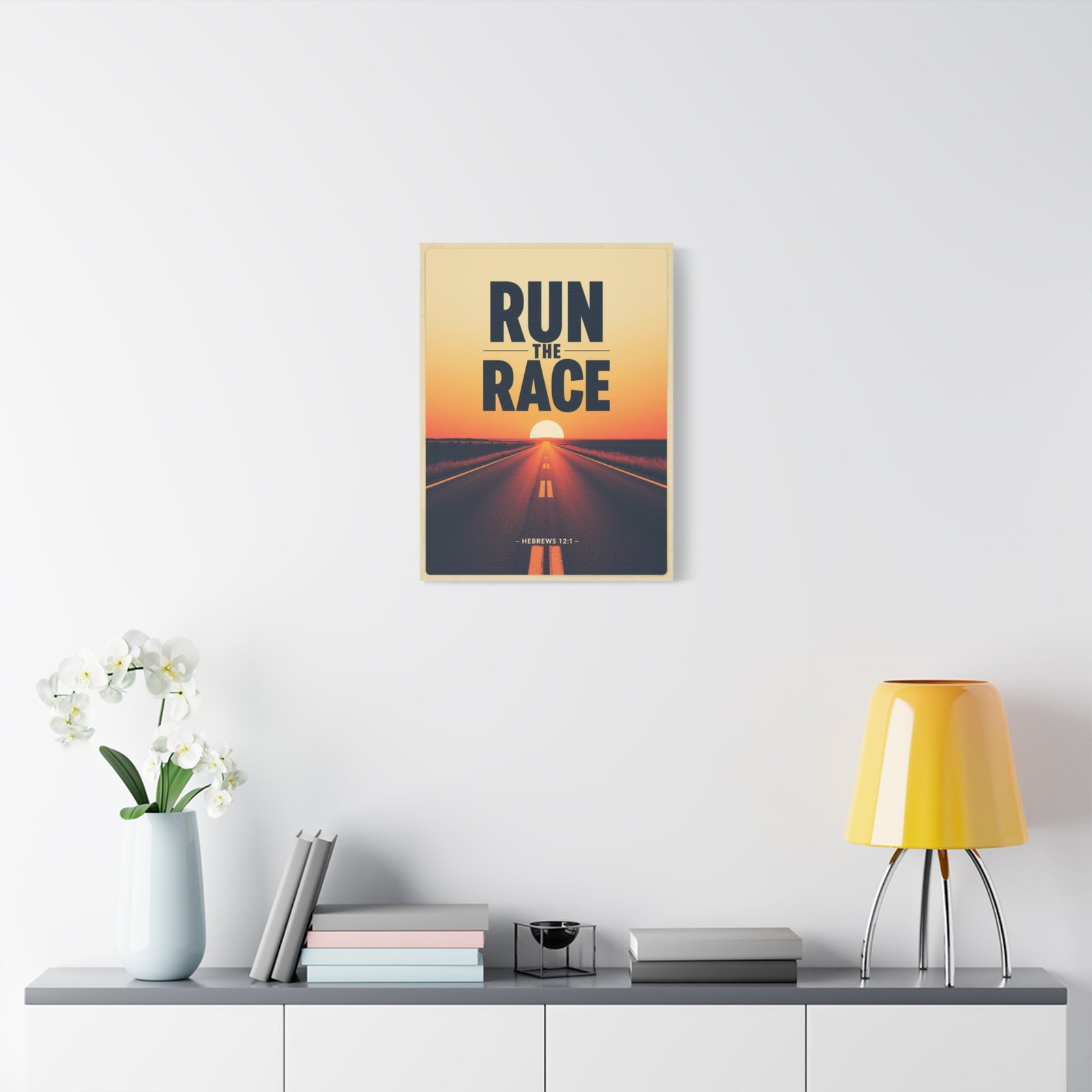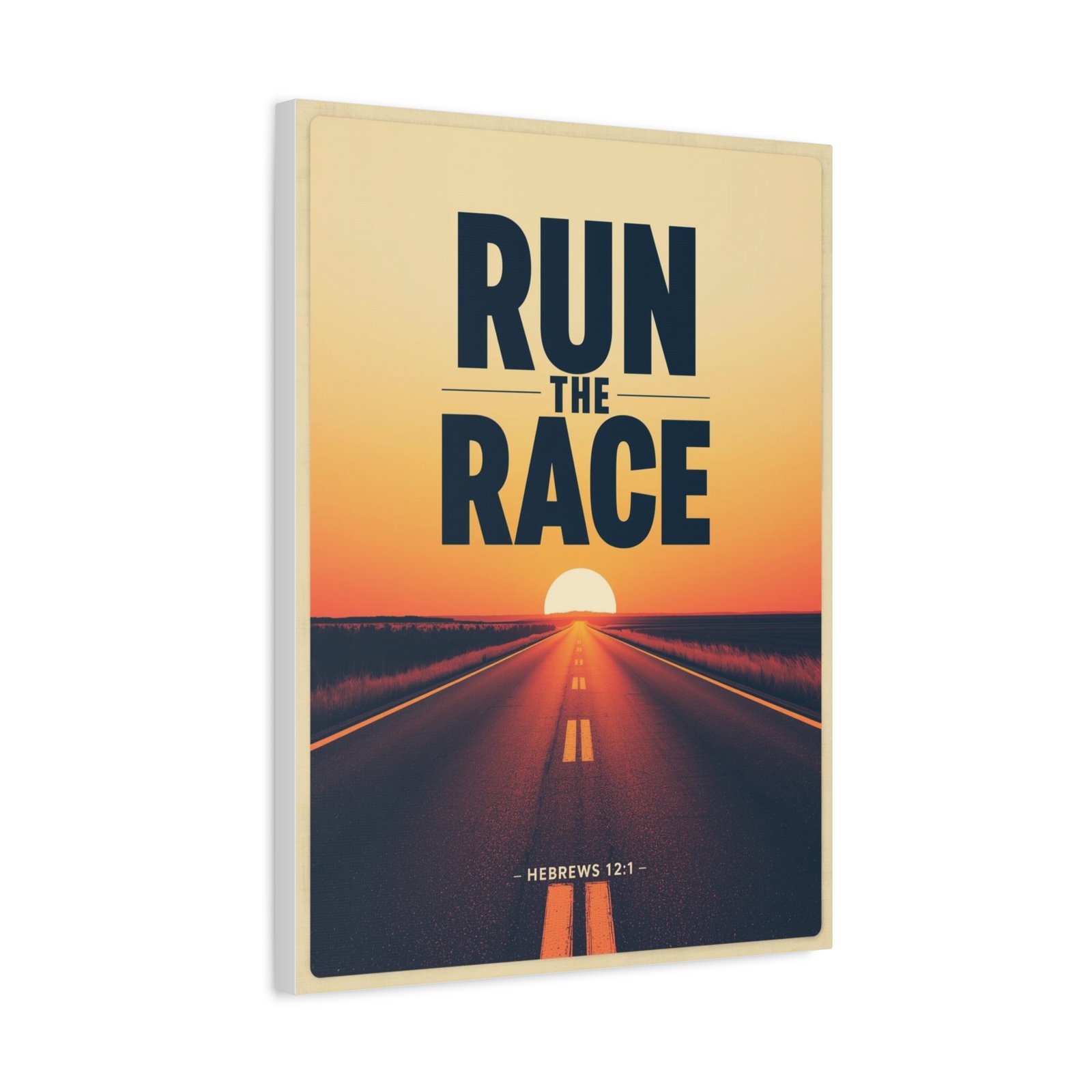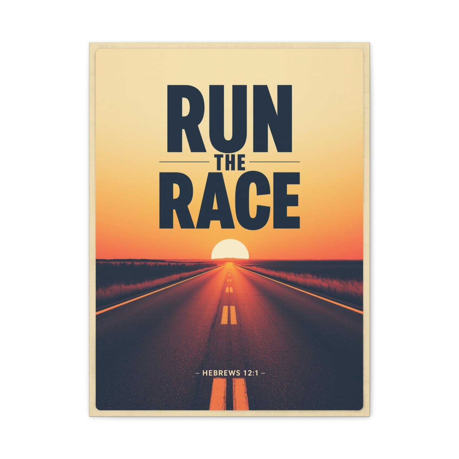 Run the Race Matte Canvas Wall Art — Inspirational Christian Sunset Road (Hebrews 12:1)